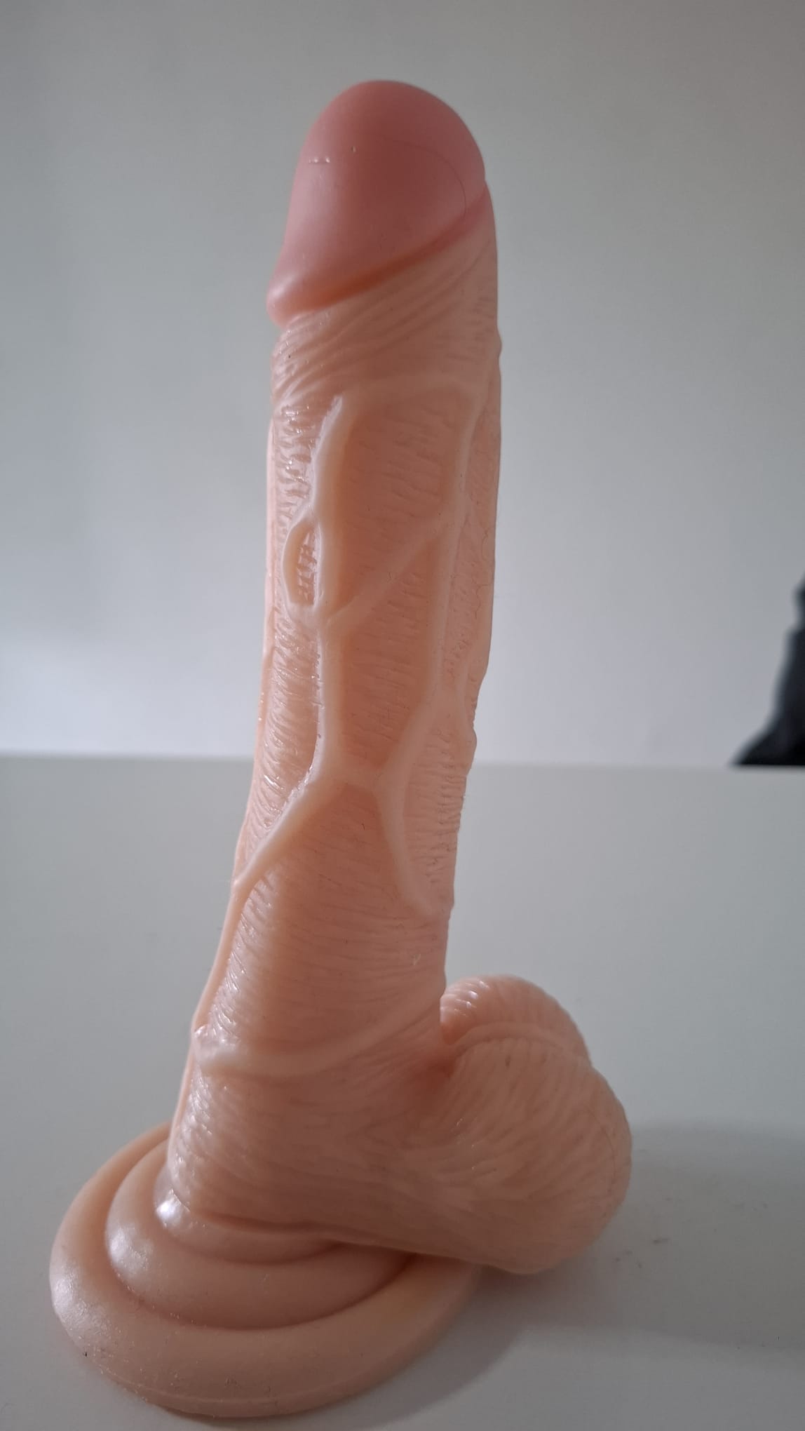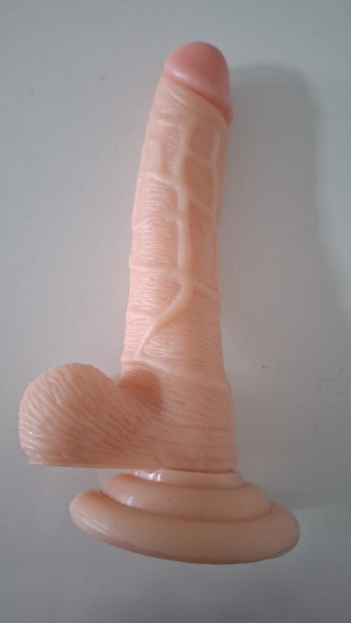 Blanke dildo met zuignap. Hij is 21 cm lang en de ballen zijn 4,5cm breed.