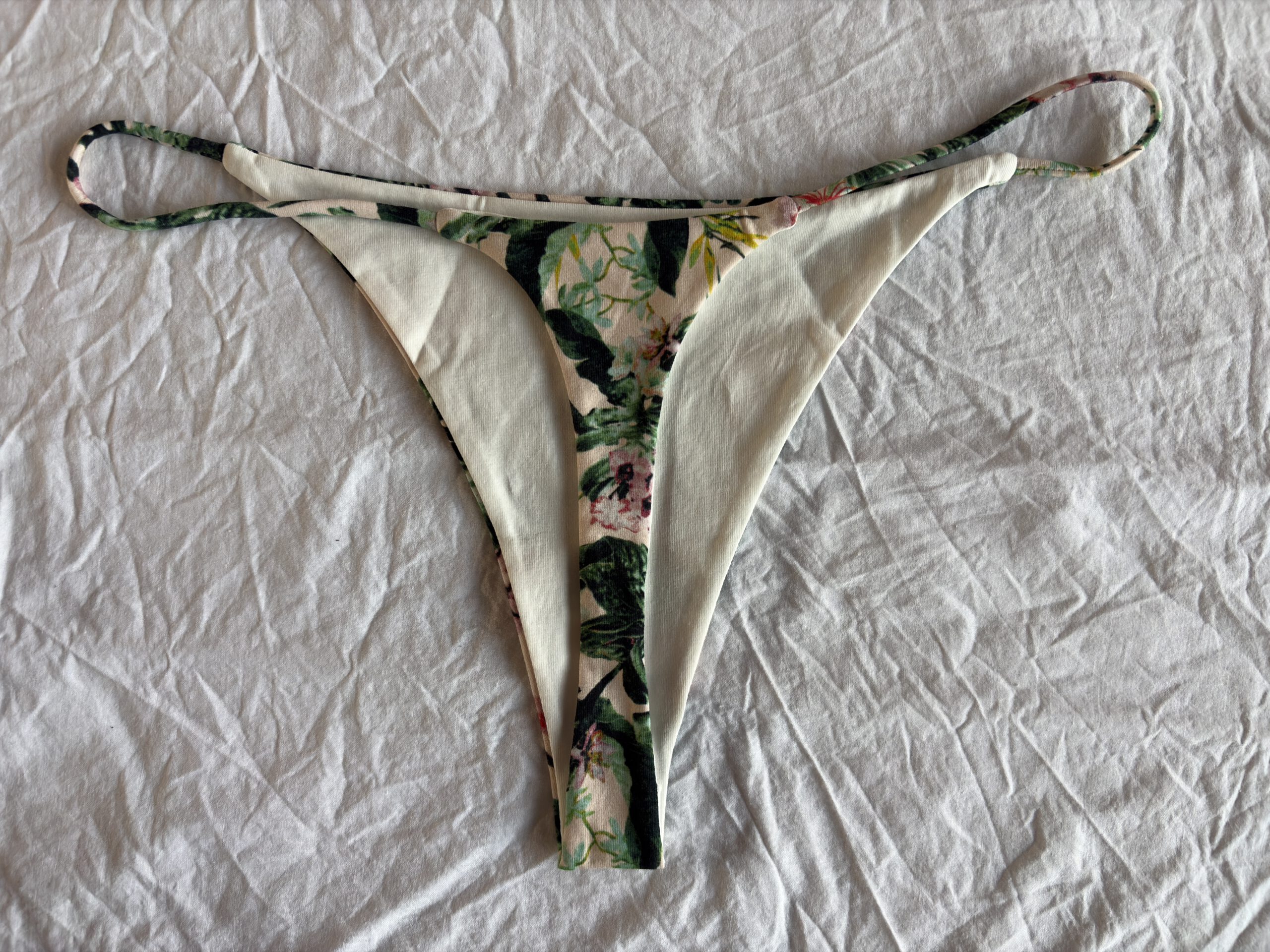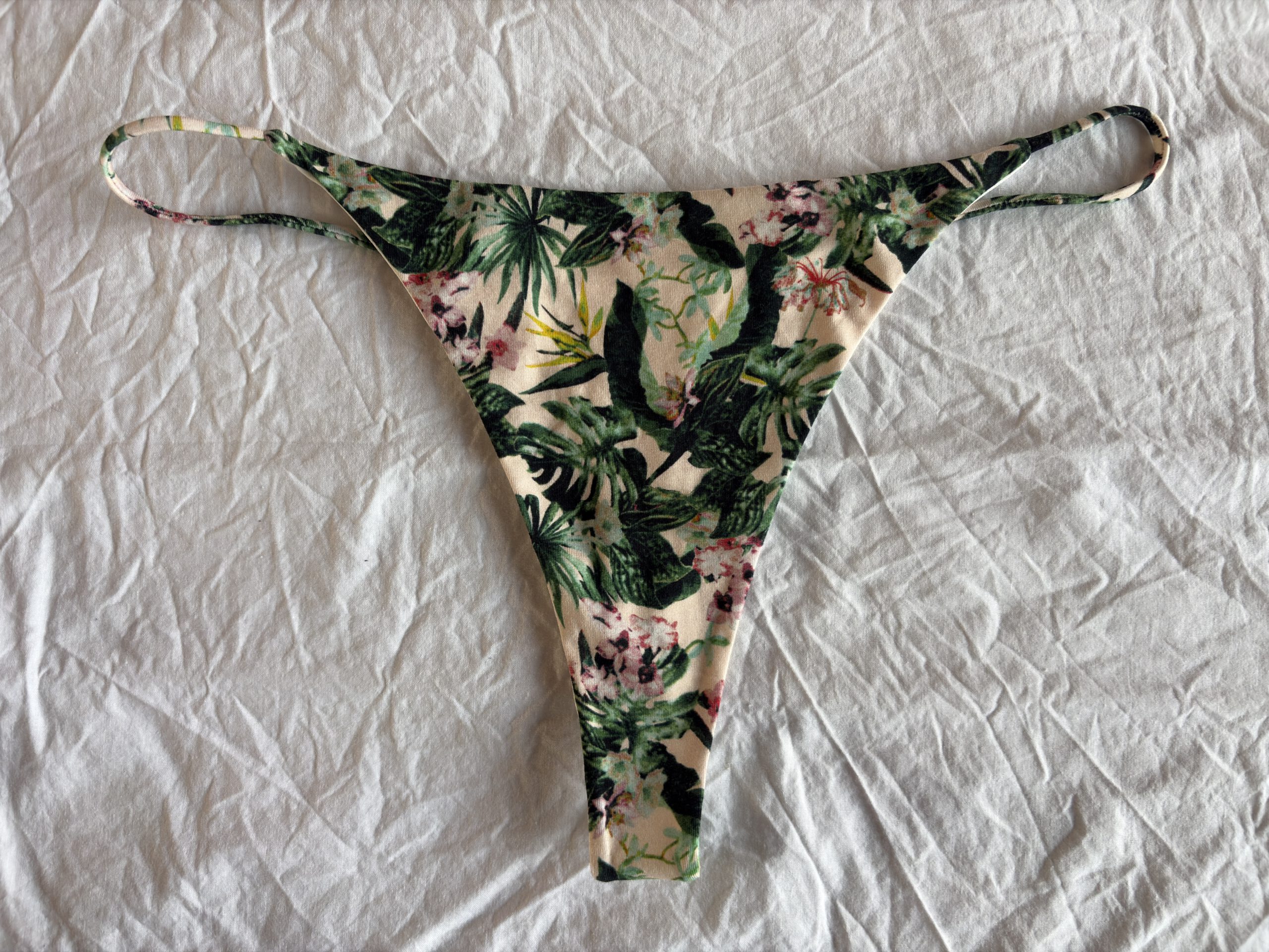 Een fleurige katoenen string met bloemen en planten.