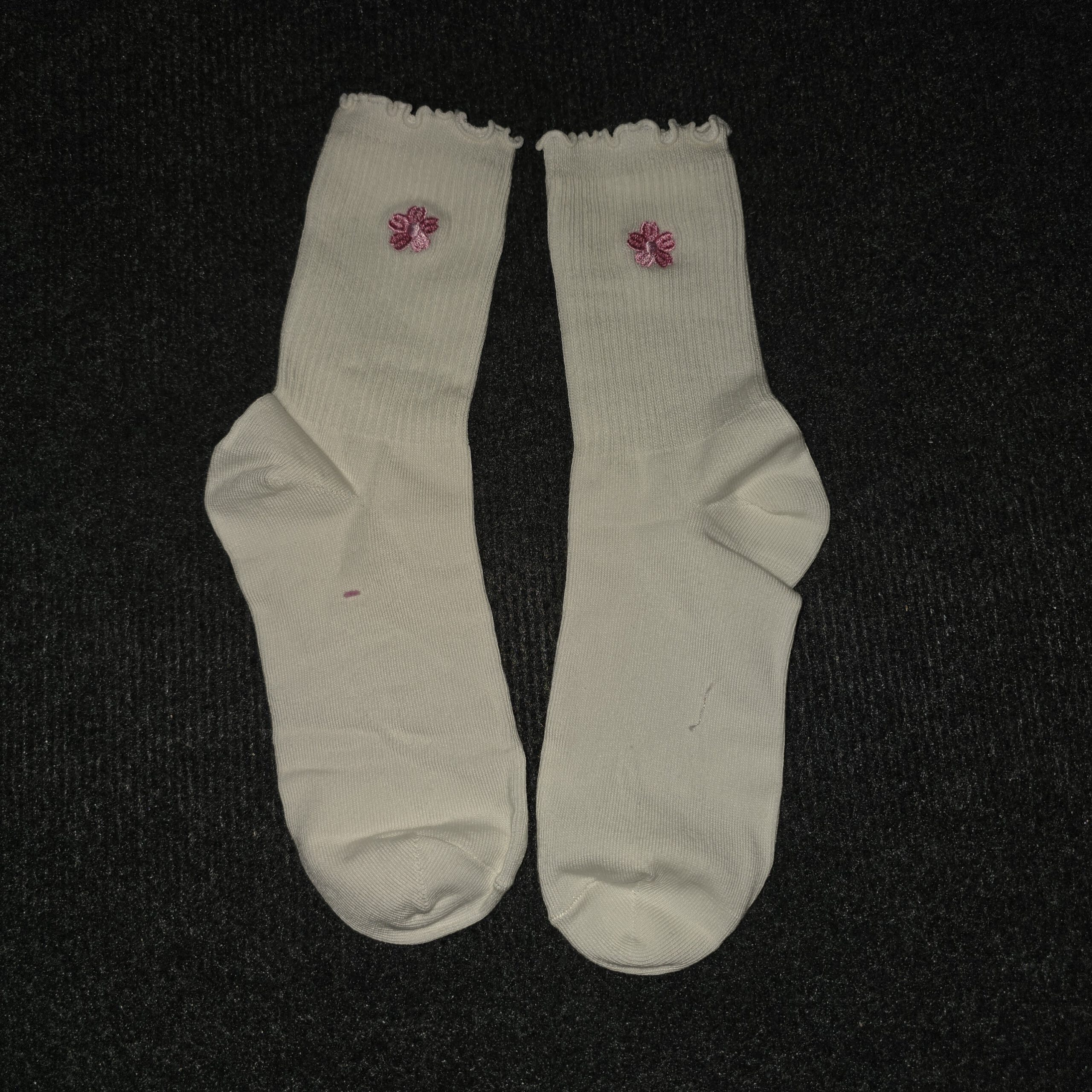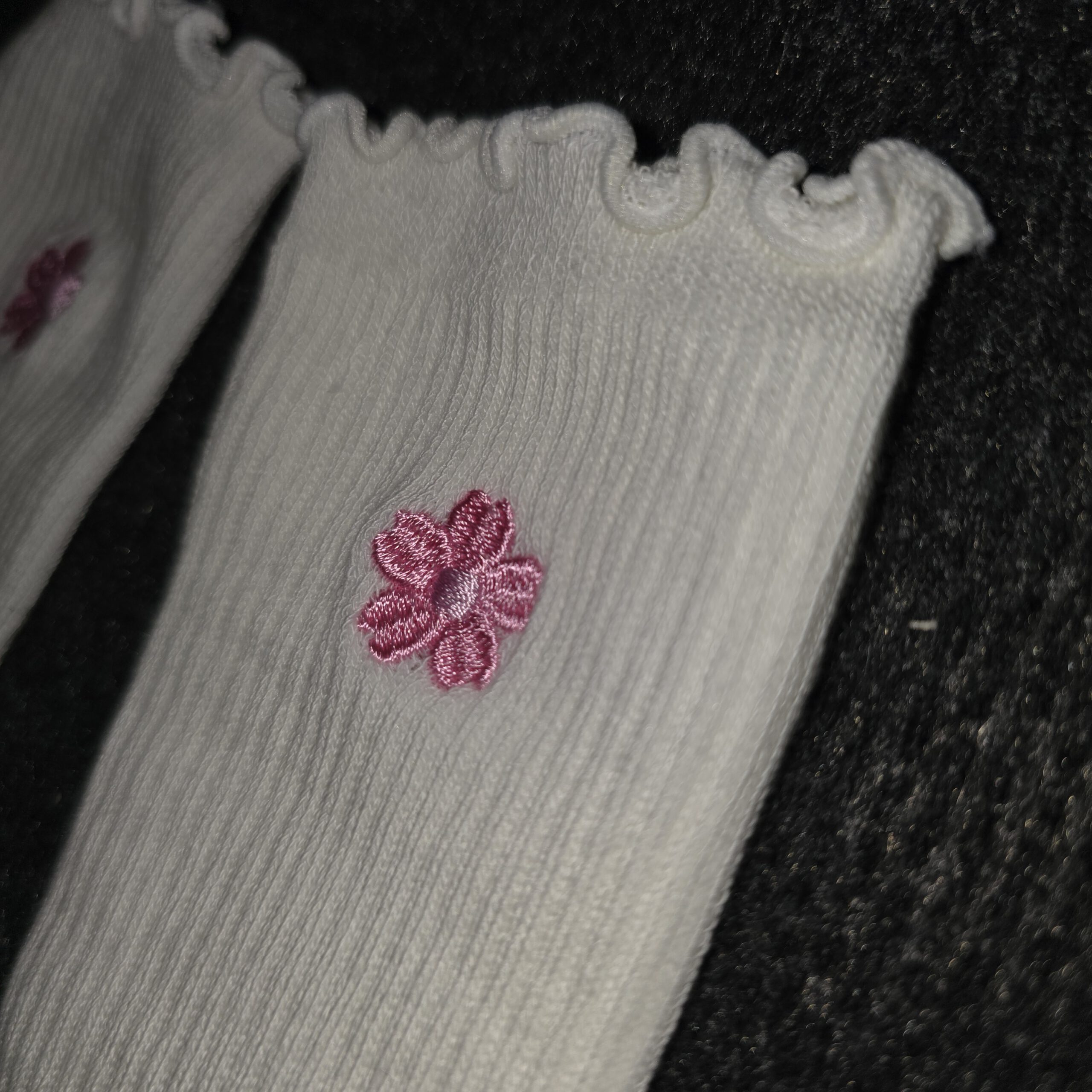Schattige witte sokken met een bloemetje geborduurd op de zijkant.