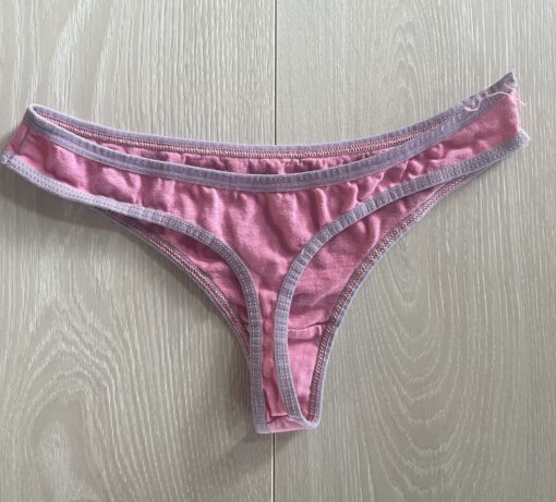 Roze string van katoen met poesje en een klein roze strikje
