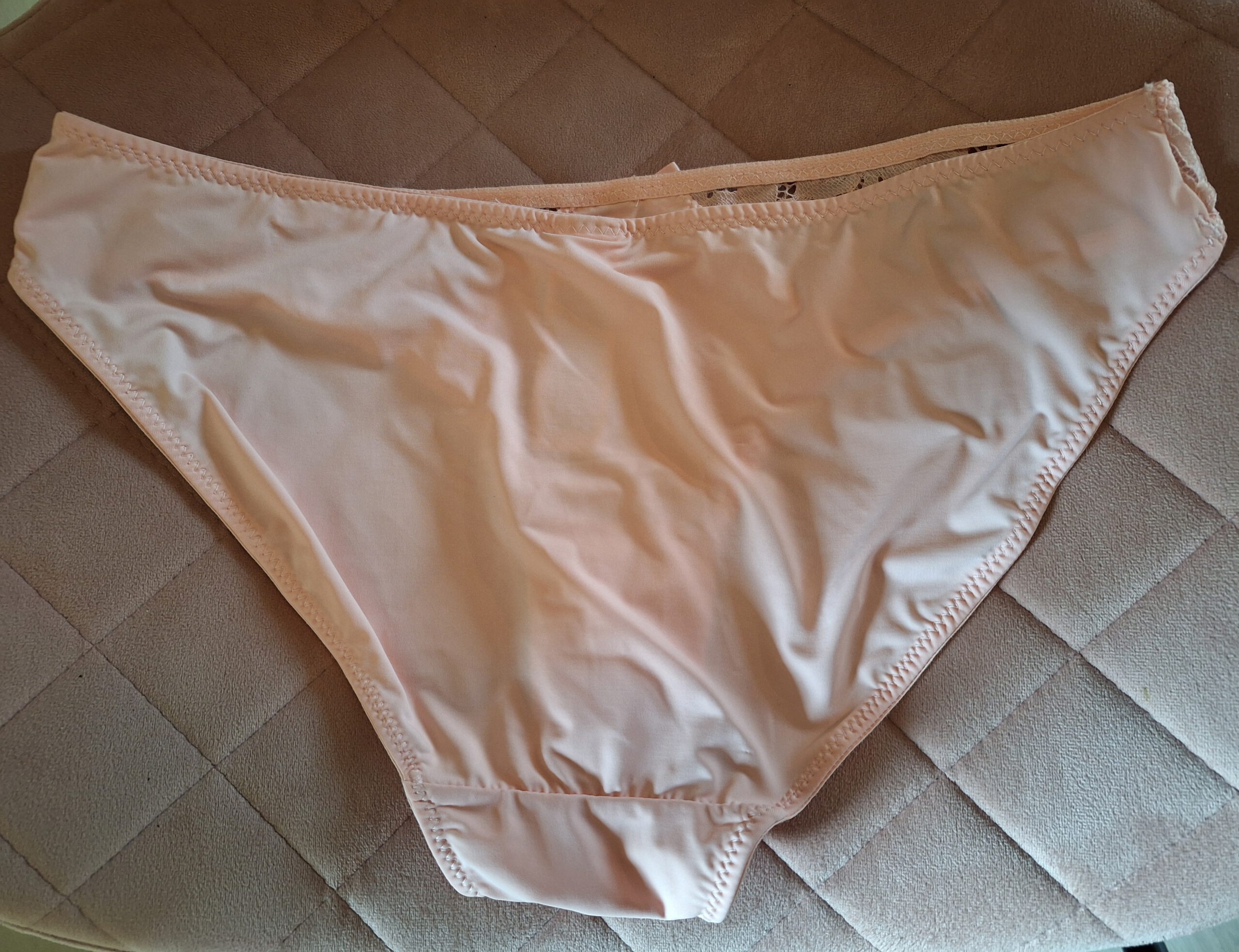 Zalmroze slipje in maat M, gedragen. Ik geef hem graag door 🙂
