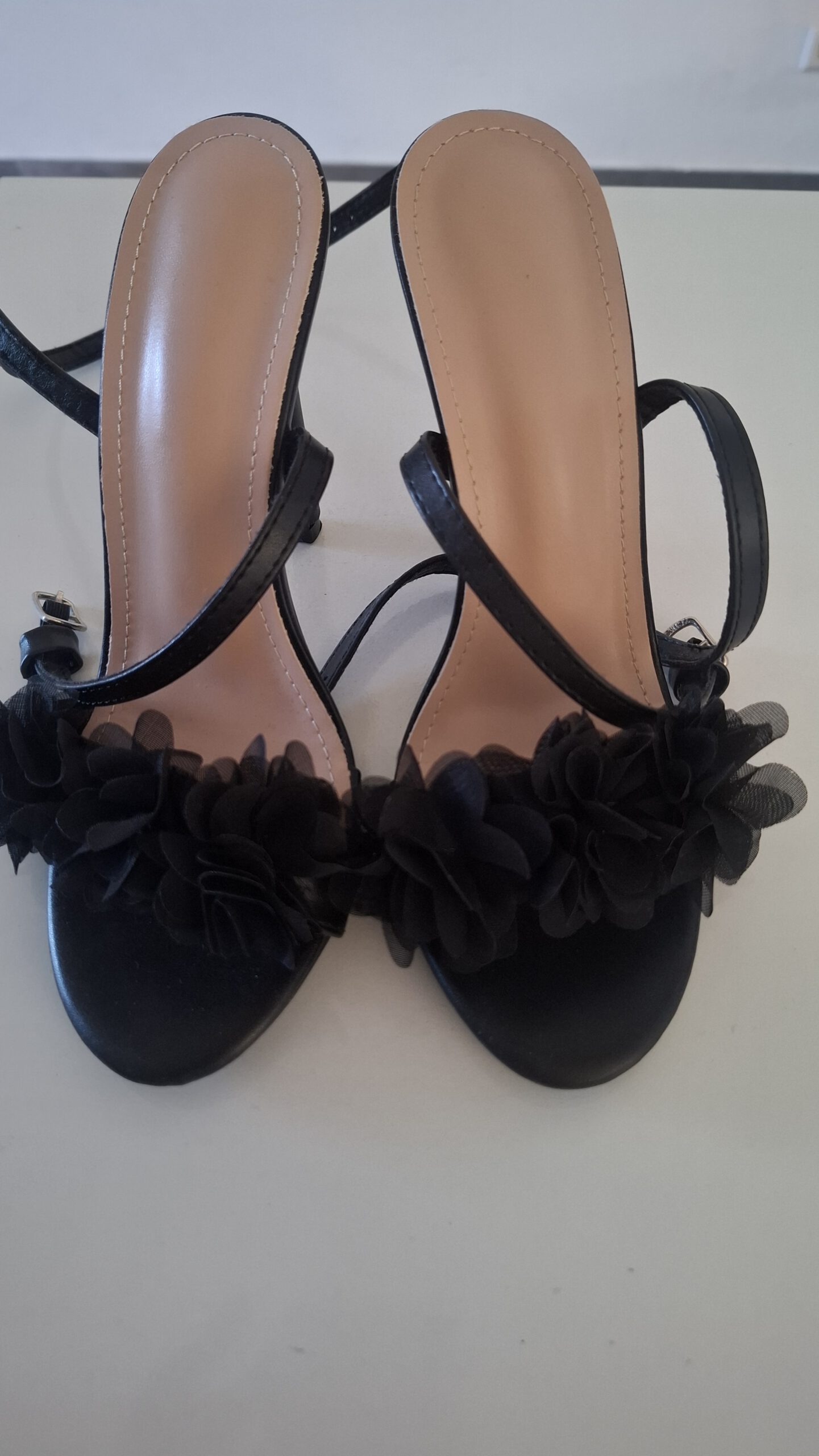 Nieuwe mooie hakjes met bloemetjes. Nooit gedragen, ze zijn net te groot. De schoenen zijn maatje 39.