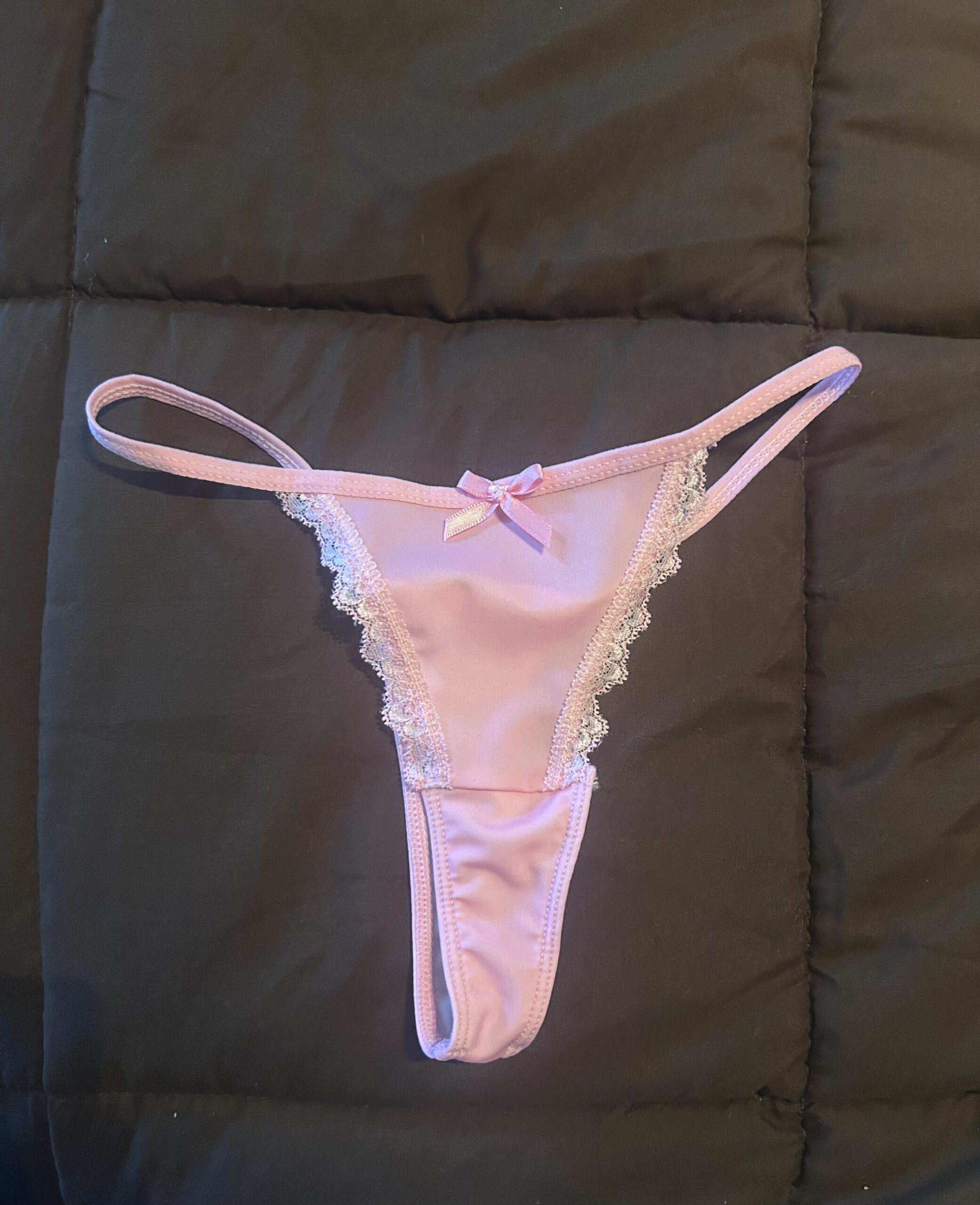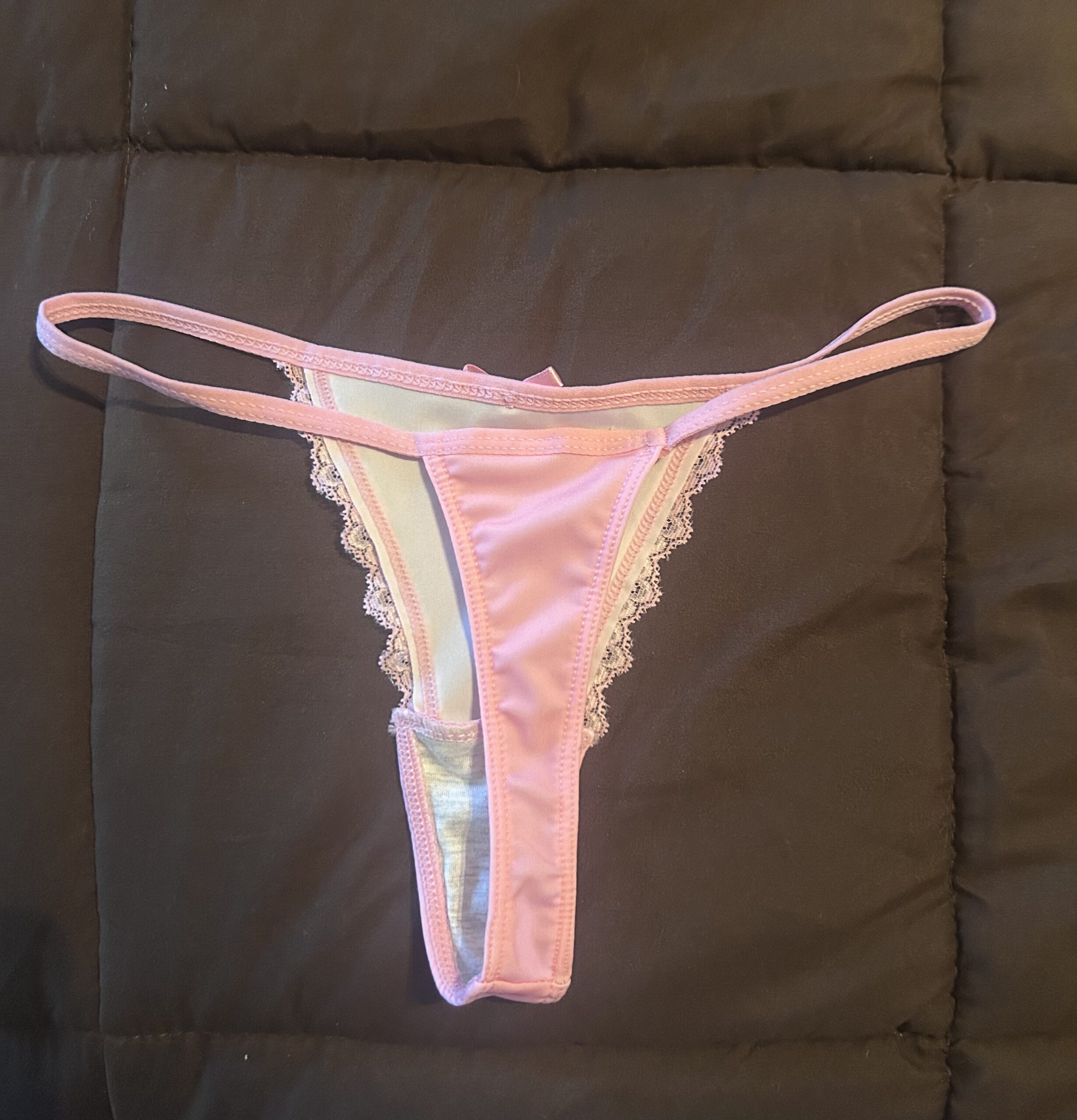 Roze string met schattige kanten details, maat xs