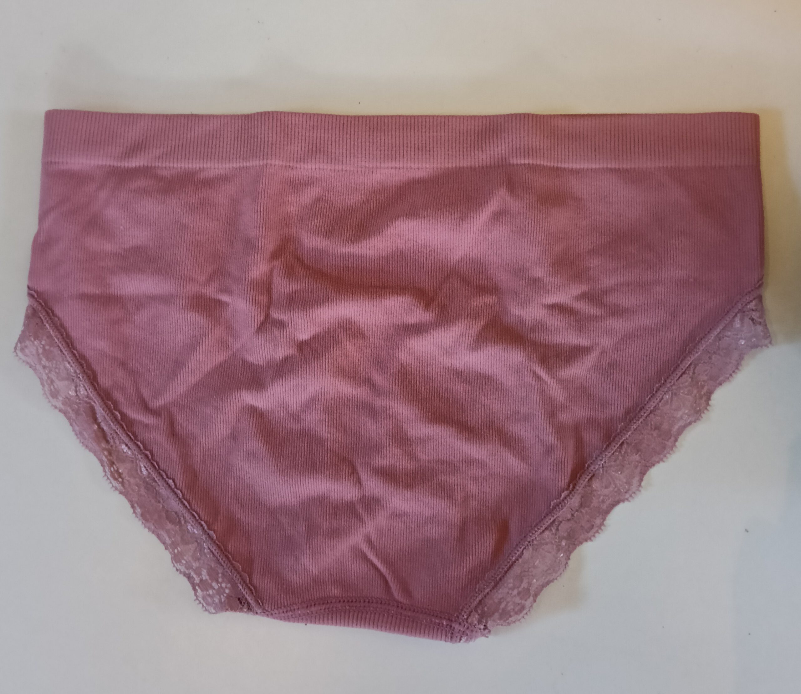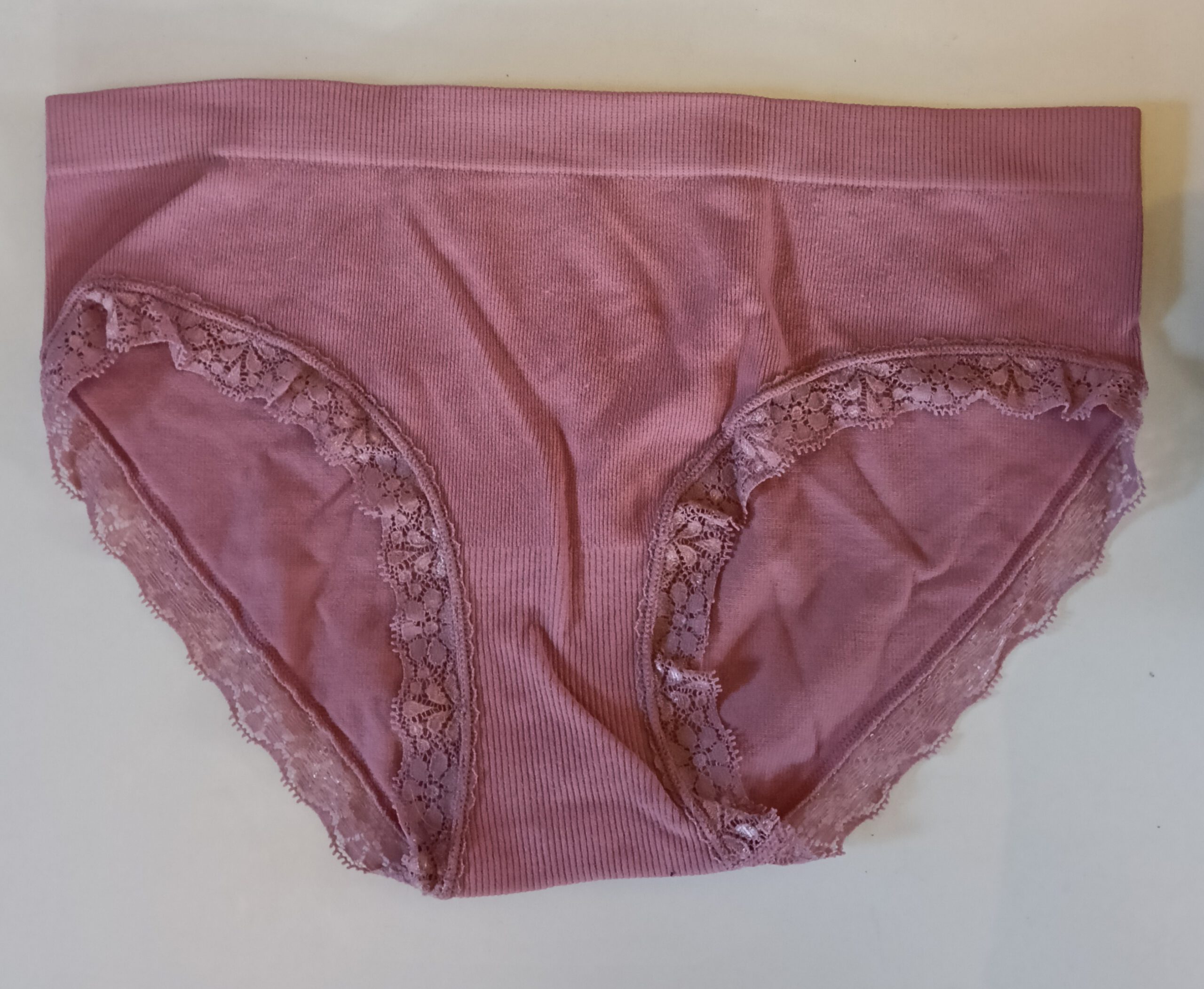 Roze slipje met kanten randjes.