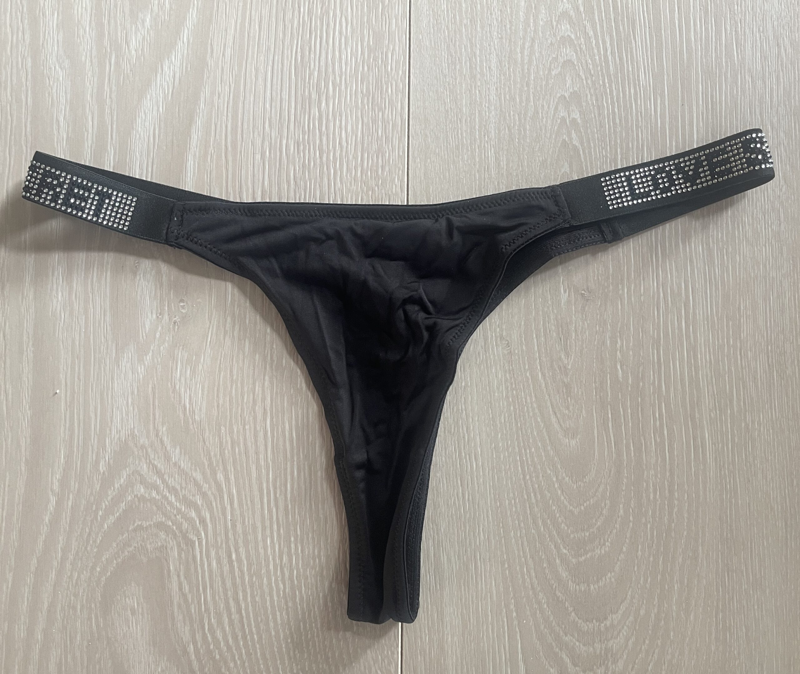 Luxe zwarte string met glitterbandjes met tekst Secret Love.