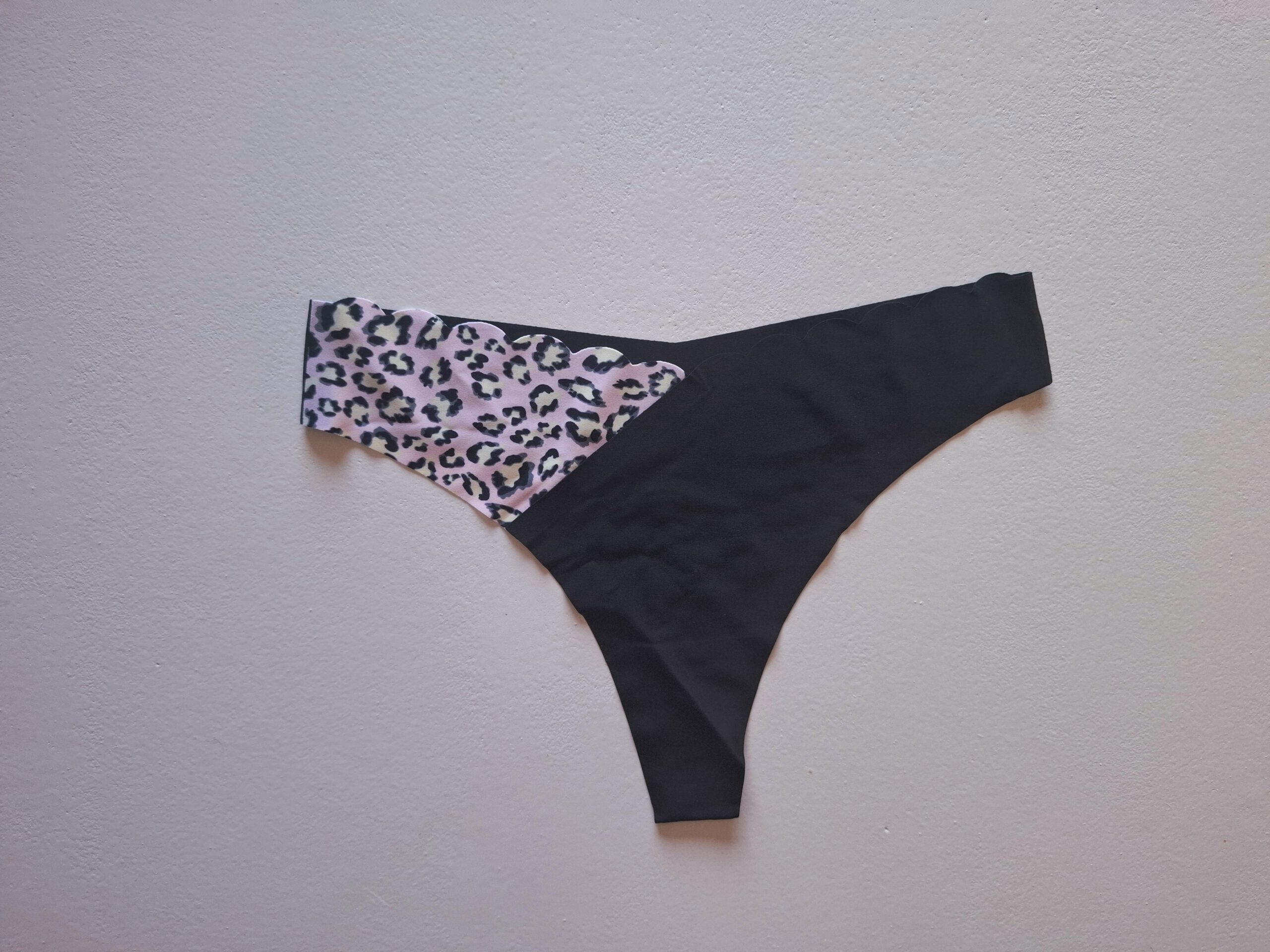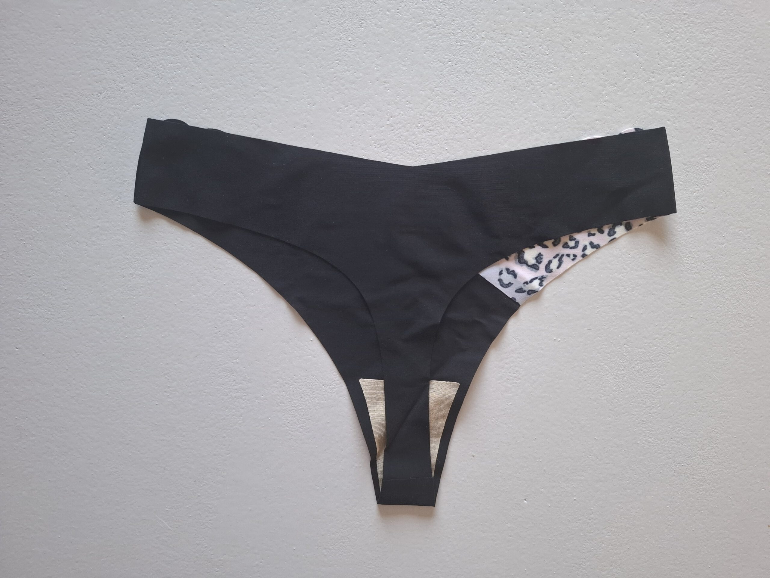 Naadloze zwarte string met panterprint