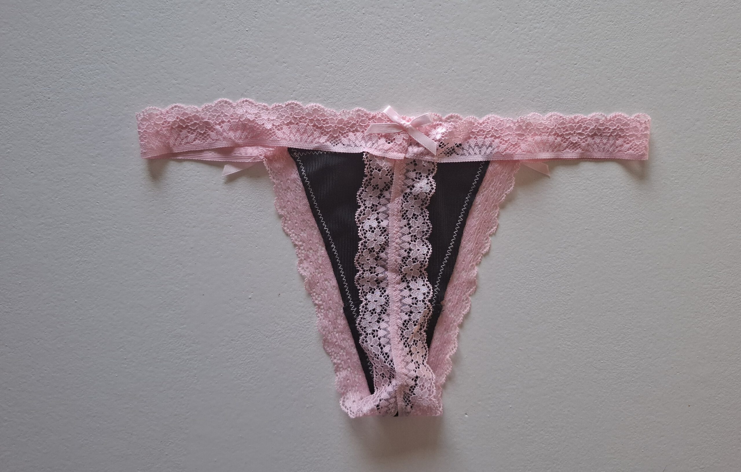 Zwarte string met roze kant