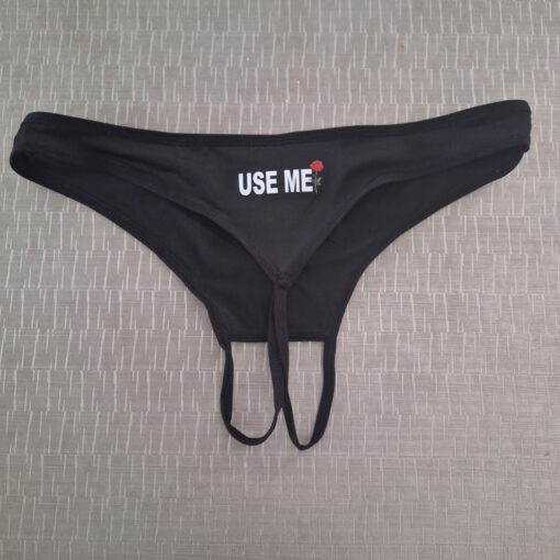 Zwarte slip “Use me” met open kruis. Foto’s bestellen aangeraden!